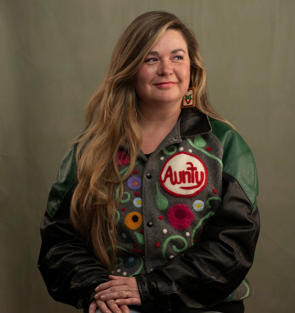 She attended Kootenay School of the Arts with a major in the Fibre Arts in Nelson, B.C. Rose has exhibited her artwork in both group and solo exhibitions. Most recently, Melanie has her largest showing of work to date in her solo show, Li moond di fleur at the Woodland Cultural Centre in Brantford Ontario. In the summer of 2023 Melanie’s natural dye practice took her to both Ottawa, at the National Gallery of Canada and Santa Fe, New Mexico’s SWAIA Fashion shows, where her work walked the runway. A recent career highlight was exhibiting in the group show, Storied Objects/Metis Art in Relation at the Remai Modern in Saskatoon, Saskatchewan. A great honor was to receive the distinction of Excellence in Textiles from the Saskatchewan Craft Council in Dimension’s 2013 touring show. In 2020, Melanie was named a CBC Future 40 for her work in arts and culture. In addition, she was one of seven artists awarded the Saskatchewan Foundation for the Arts Endowment Award to further artistic pursuits in 2021. In 2023 she was honored with the Queen Elizabeth II Platinum Jubilee Medal from His Honour the Honourable Russ Mirasty Lieutenant Governor of Saskatchewan for her work in Arts & Reconciliation. Most recently she was awarded the 2025 Indigenous Resurgence in Action category for the Regina YWCA Women of Distinction.